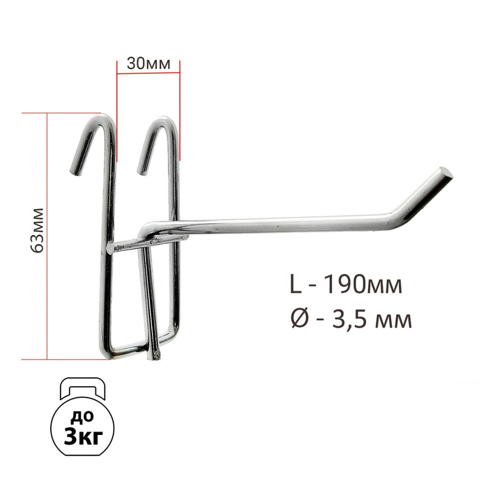 Крючок на сетку одинарный, d=3,5 мм, L=15 см, цвет хром