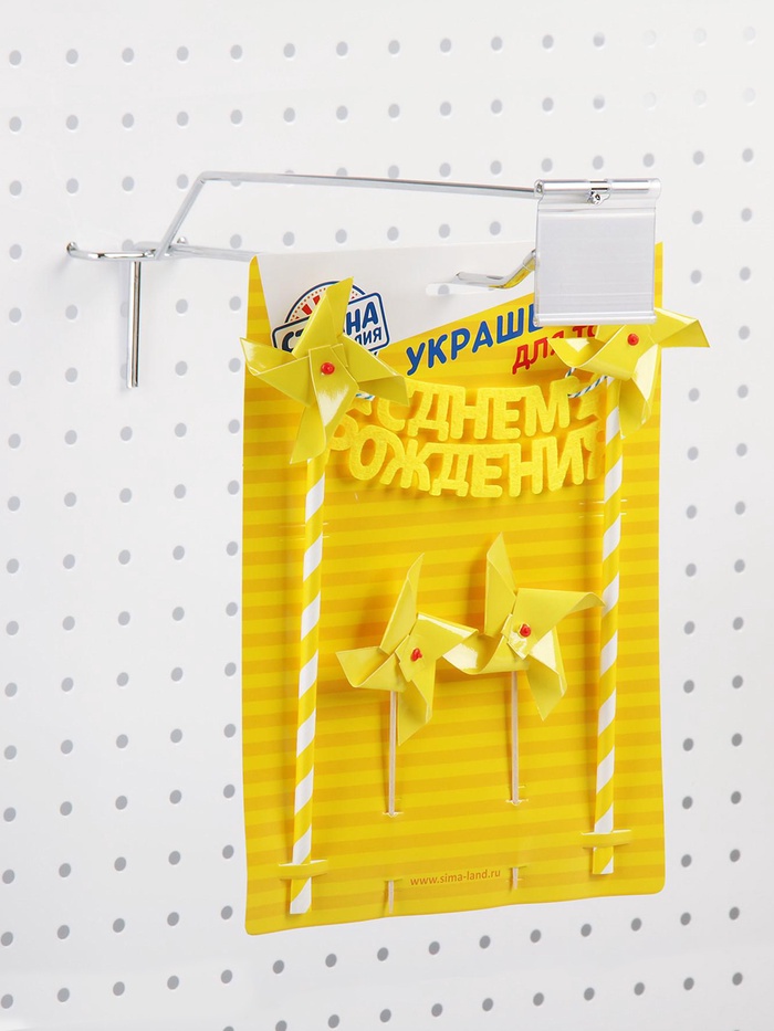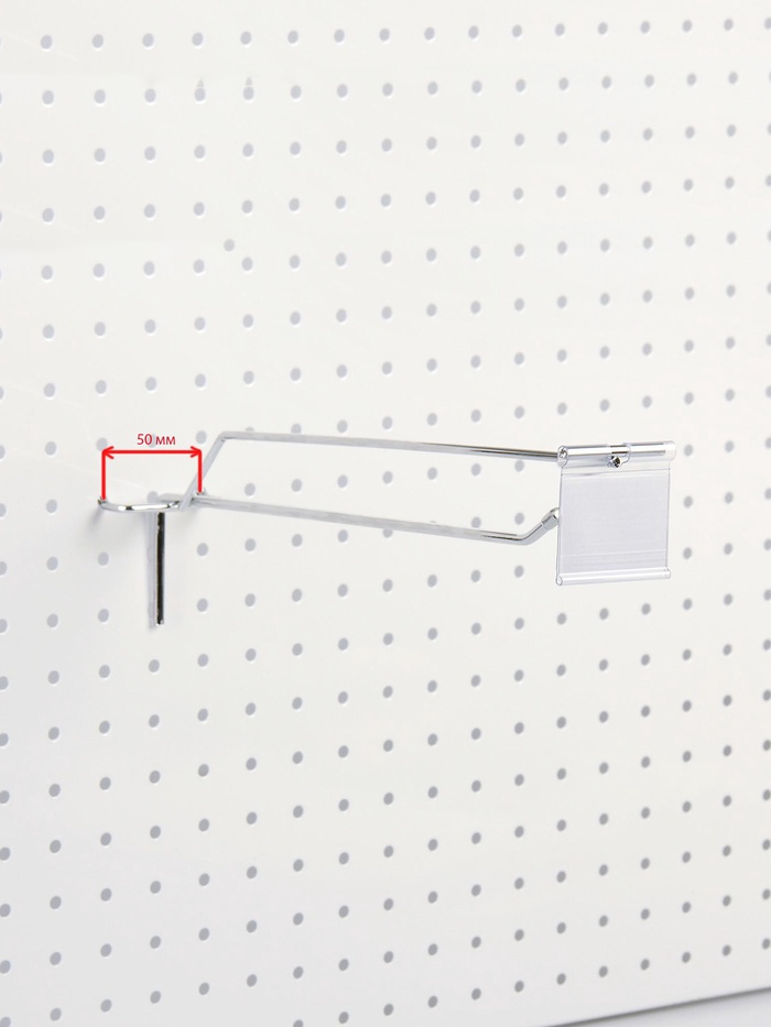 Крючок одинарный с ценникодержателем на металлическую перфорированную панель, d=4.8 мм, L=30 см, шаг 50 мм, цвет хром