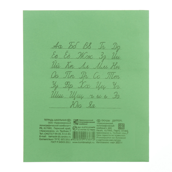 Тетрадь 12 листов косая линейка "Зелёная обложка", офсет №1, 58-63гр/м2, белизна 90%