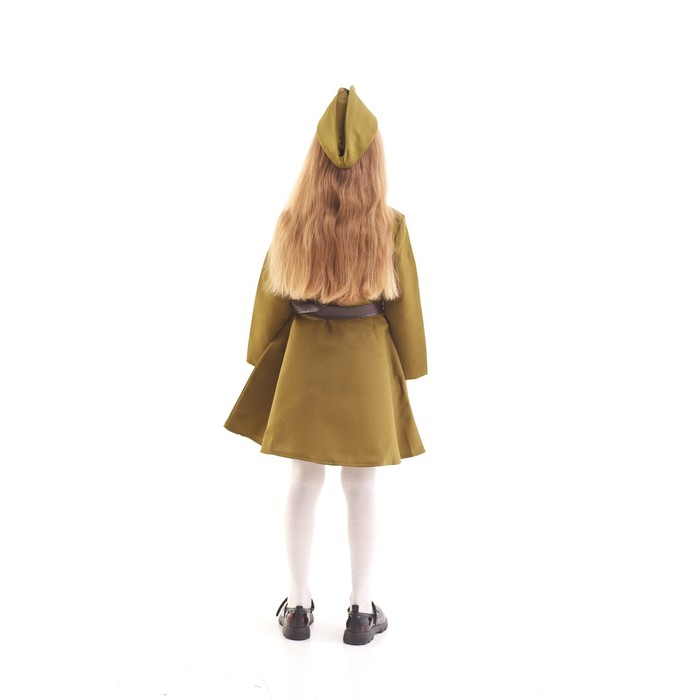 Карнавальный костюм для девочки, военное платье, пилотка, ремень, 3-5 лет, рост 104-116 см