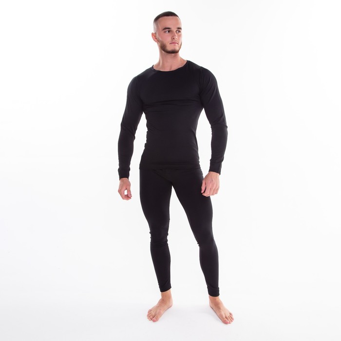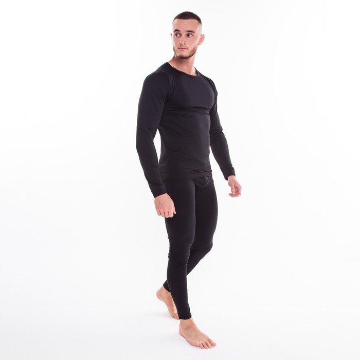 Термобельё мужское НАЧЁС (лонгслив, кальсоны), цвет чёрный, размер 46-48