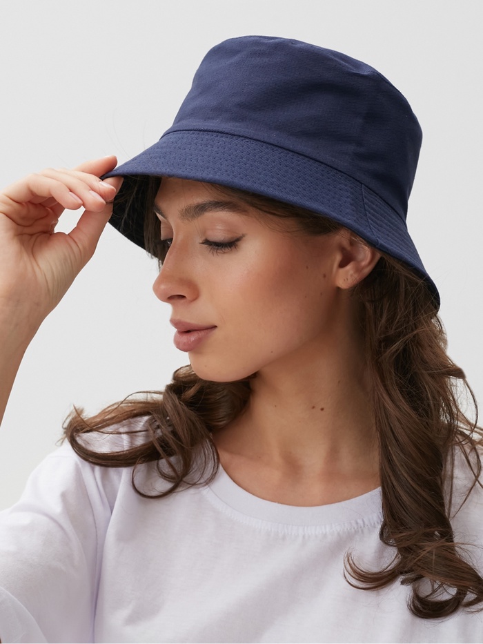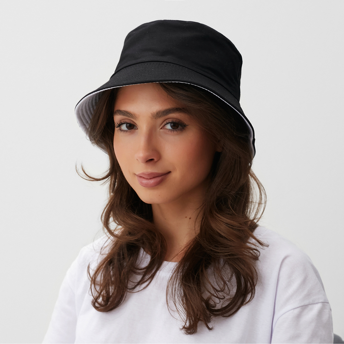 Панама однотонная, двусторонняя, цвет синий/чёрный, размер 57-58