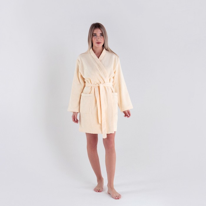 Халат махровый Экономь и Я женский, размер 50-52 цвет персиковый, 100% хлопок, 320 г/м2