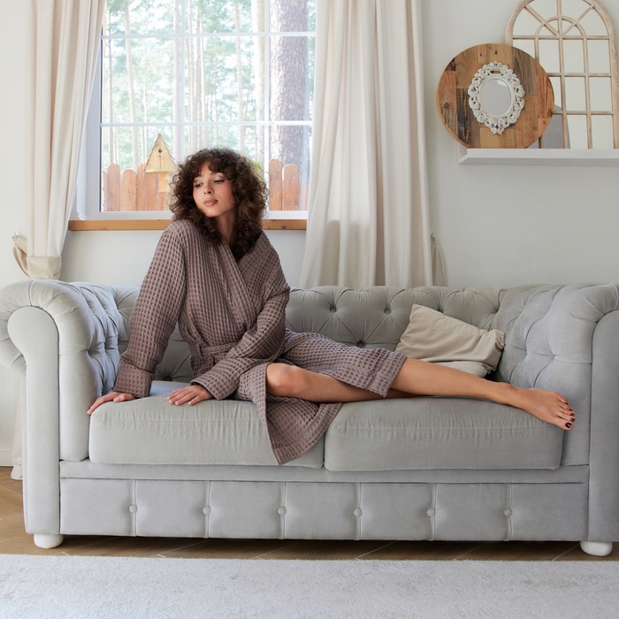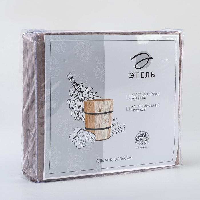 Халат вафельный женский удлинённый Этель "Boho" размер 42-44, цвет мокко, 100% хлопок, 290 г/м2