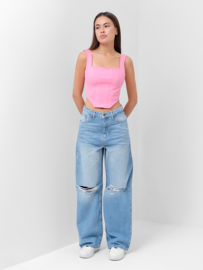 Топ женский джинсовый MIST: Denim р.48, светло-розовый