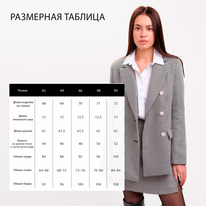 Пиджак женский двубортный MIST р. 42, чёрный/белый