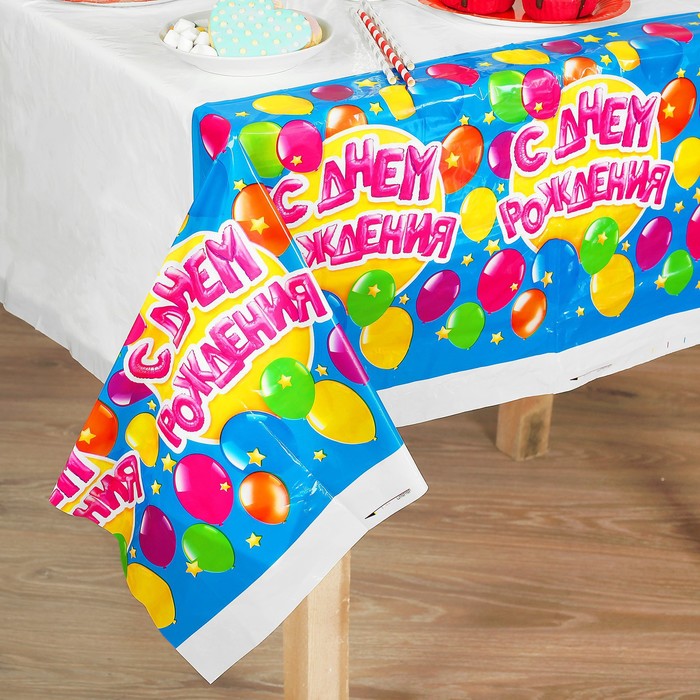 Скатерть одноразовая «С днём рождения», 180×137 см за 200.00 ₽ Купить оптом и в розницу на tijorat.com | Быстрая доставка | скидки