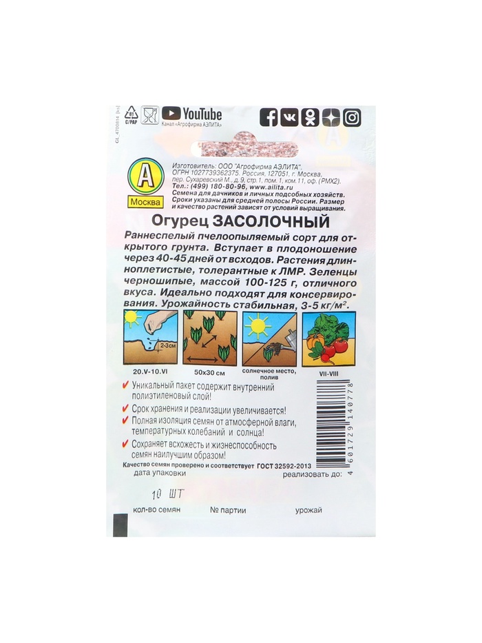 Семена огурца "Засолочный", "Лидер", 10 шт.