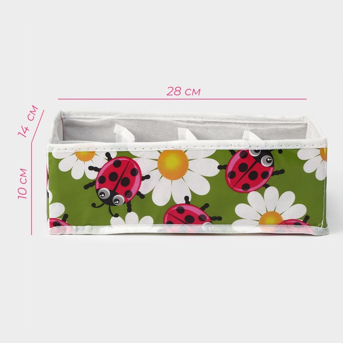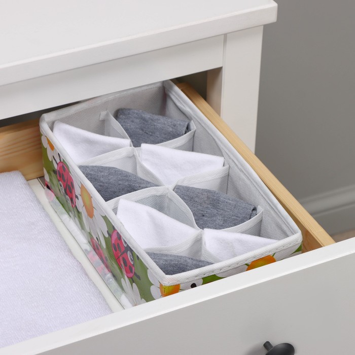 Органайзер для хранения белья Доляна «Божьи коровки», 8 отделений, 28×14×10 см, цвет зелёный