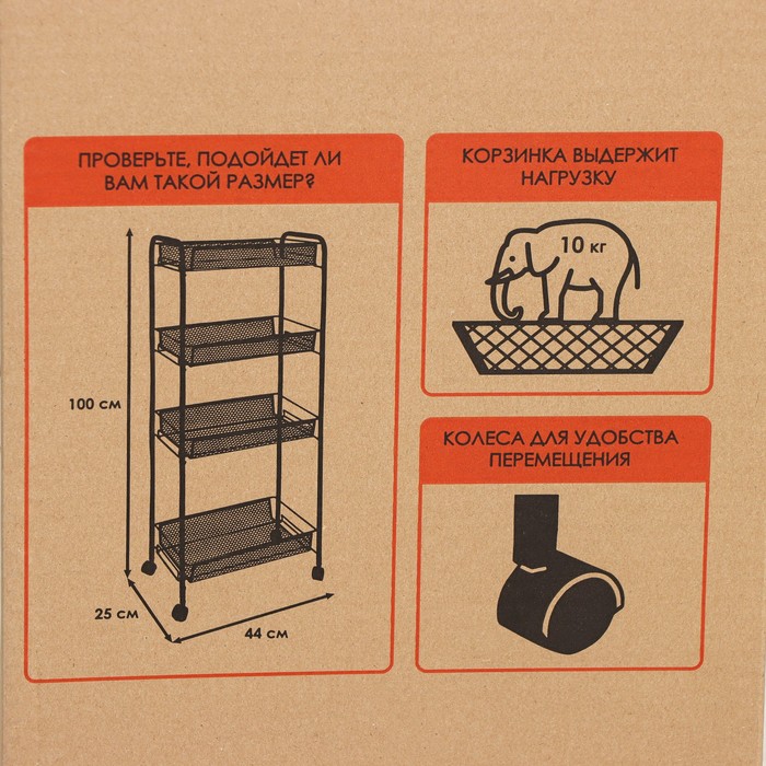Этажерка «Ладья 24К», 4 яруса, 44×25×100 см, цвет чёрный