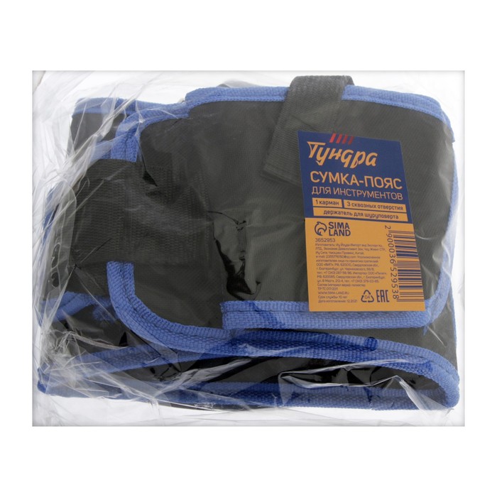 Сумка для инструментов ТУНДРА на пояс, 3 петли, карман для оснастки, держатель для дрели