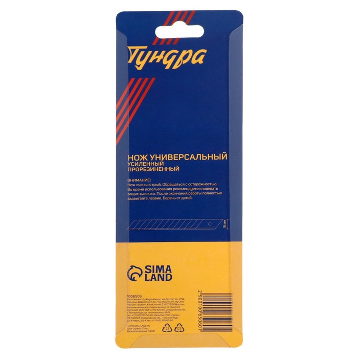 Нож универсальный ТУНДРА, пластиковый корпус, металлическая направляющая, 18 мм