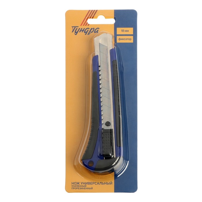 Нож универсальный ТУНДРА, пластиковый корпус, металлическая направляющая, 18 мм