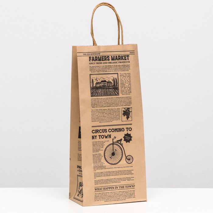 Пакет под бутылку крафтовый «Happy New Year!», 13 × 36 × 10 см