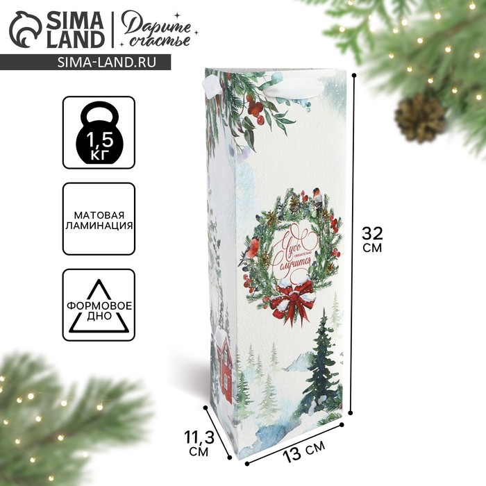 Пакет под бутылку крафтовый «Чудес в новогоднюю ночь», 13 × 36 × 10 см