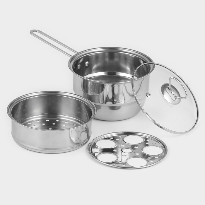 Кастрюля-пароварка, 2,5 л, металлическая крышка, цвет хромированный