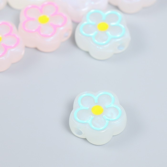 Бусина пластик "Цветочек с контуром" фосфорная МИКС 1,9х1,9х0,8 см