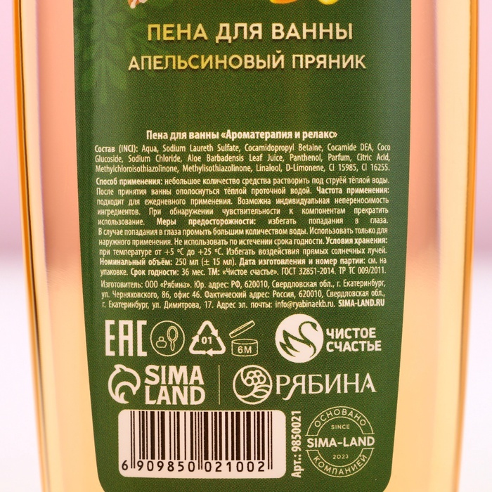 Пена для ванны «Тепла и уюта!», апельсиновый пряник, 250 мл