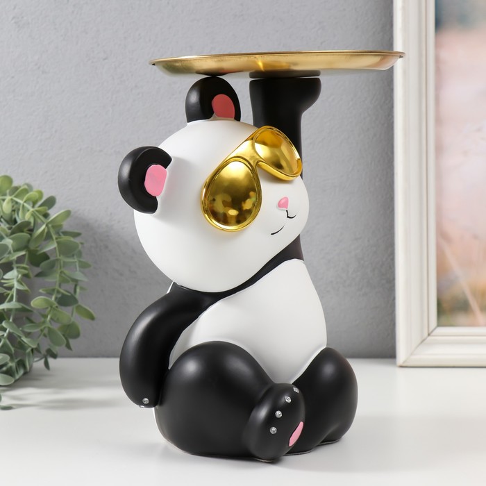 Сувенир полистоун "Панда с золотой подставкой" 22,5х17х25,2 см
