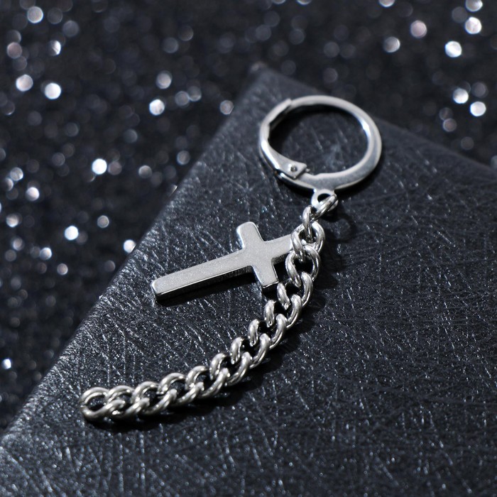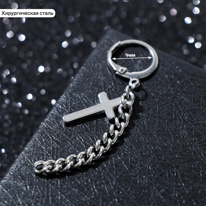 Пирсинг в ухо «Крест» с цепочкой, d=9 мм, цвет серебро