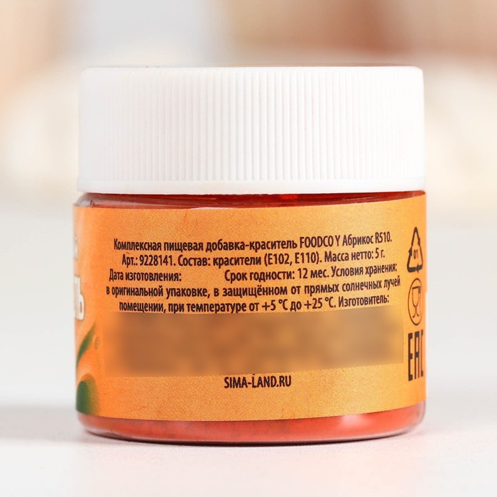 Краситель сухой водорастворимый «Оранжевый» для пасхальных яиц и десертов, 5 г.