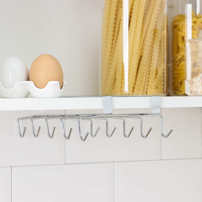 Держатель для кружек подвесной на 8 предметов Доляна, 27,5×20×7,5 см, на толщину полки 3,5 см, цвет хром