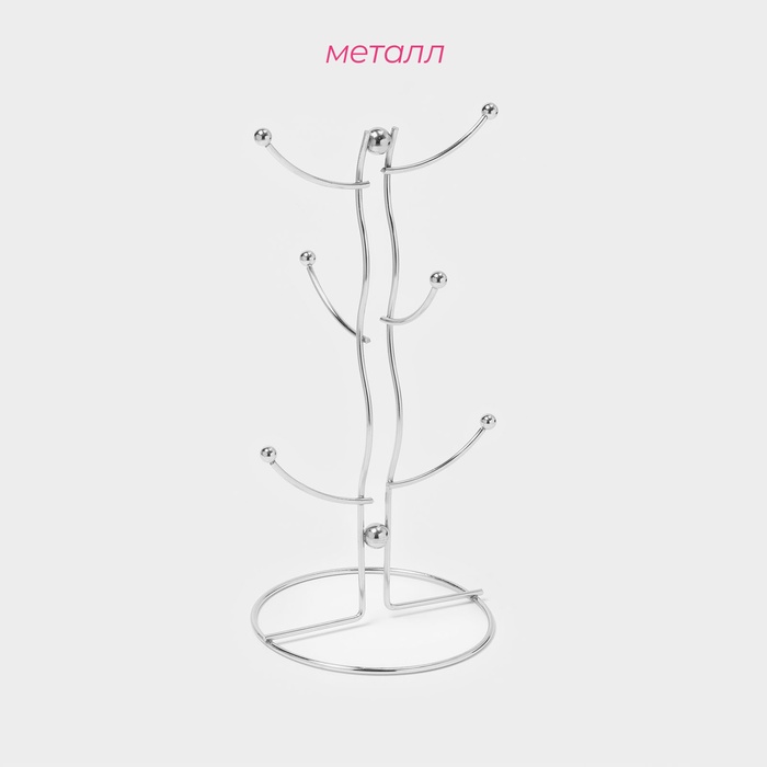 Подставка для кружек Доляна, на 6 предметов, 16×16×32 см, хромированная