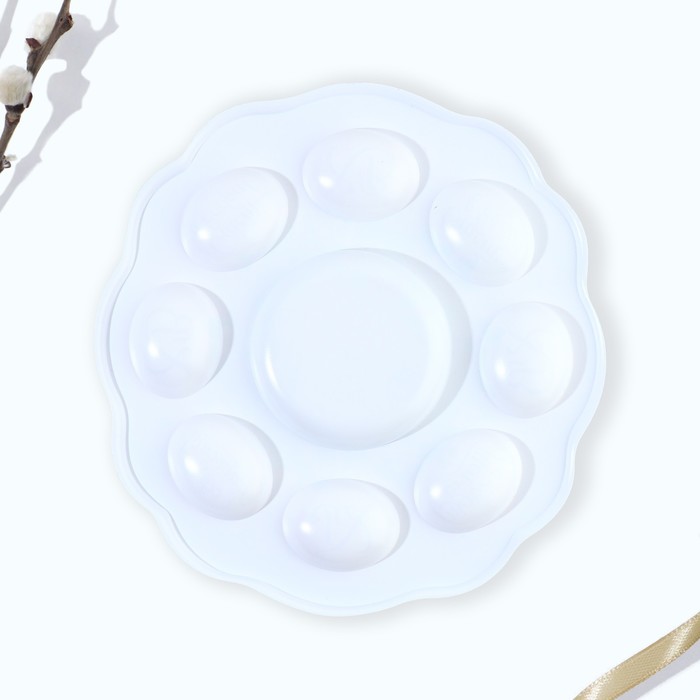 Пасхальная подставка предназначена для праздничного украшения Вашего стола в Светлый День Пасхи. В центре декоративной подставки находится углубление для пасхального кулича диаметром 9,5 см, а по окружности - 8 отверстий для пасхальных яиц. Диаметр декоративной подставки - 25 см.