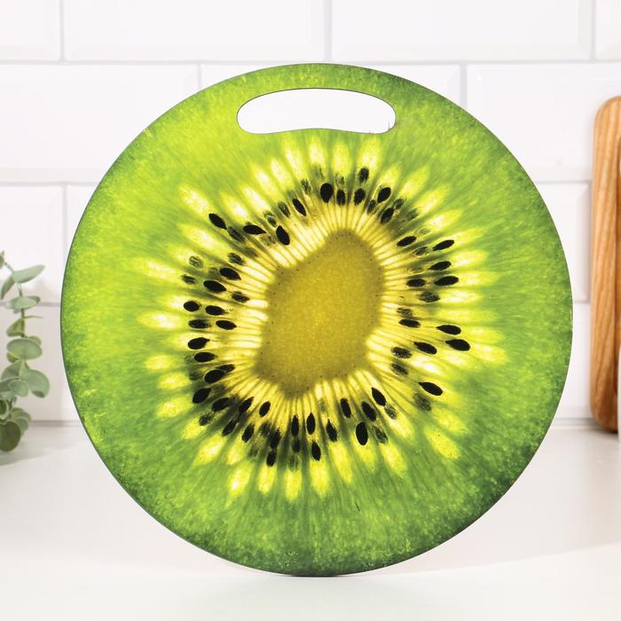 Доска разделочная и сервировочная круглая кухонная "Киви в разрезе", 25,5 см