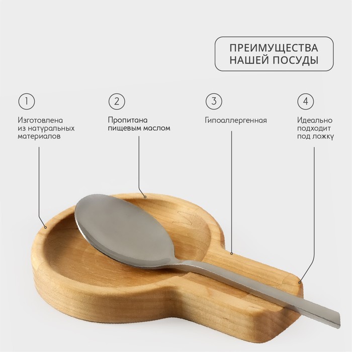 Подставка деревянная под ложку Adelica, 15×10×1,8 см, берёза