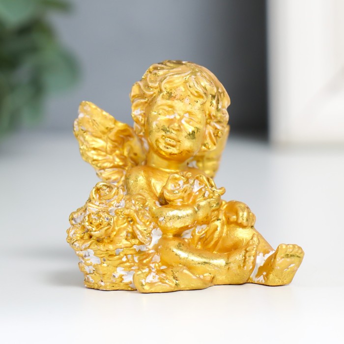 Сувенир полистоун "Ангел с розочками" золото МИКС 4х5,5х5,5 см