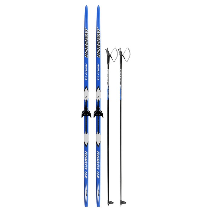 Комплект лыжный: пластиковые лыжи 195 см без насечек, стеклопластиковые палки 155 см, крепления NNN, цвета МИКС