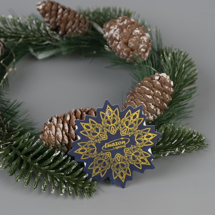 Светодиодная фигура «Венок с шишками» 20 см, пластик, батарейки CR2032х2 (не в комплекте), свечение тёплое белое