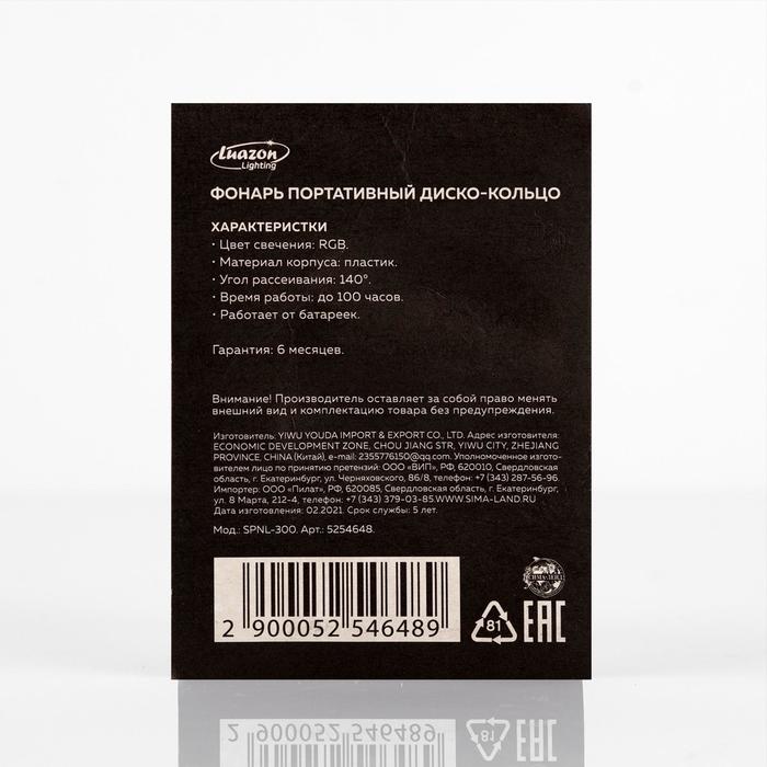 Световой прибор «Кольцо» 2.5 см, свечение RGB