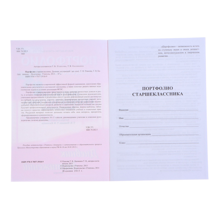 Папка "Портфолио старшеклассника" ноутбук, А4