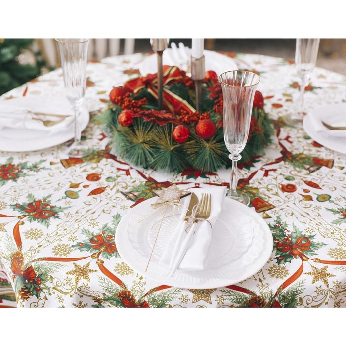 Скатерть новогодняя Этель "Новогодние игрушки" d=220см +/-3см с ГВМО, хл100%