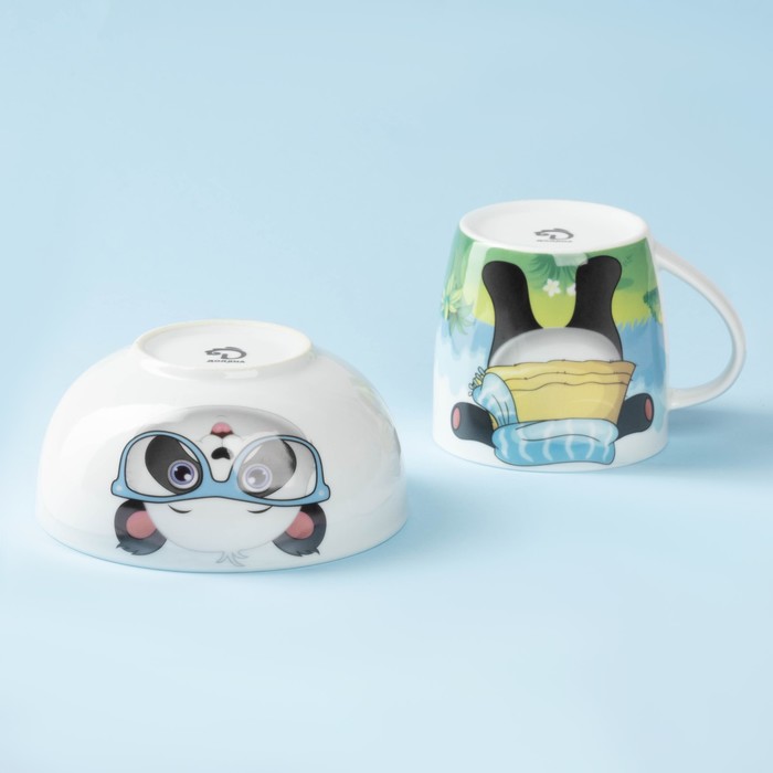 Набор детской фарфоровой посуды «Панда», 3 предмета: кружка 200 мл, миска 350 мл, тарелка d=17 см