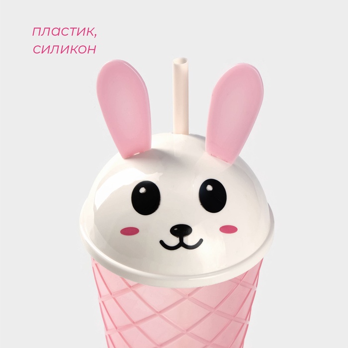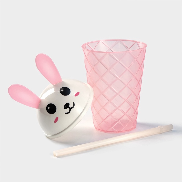 Стакан пластиковый с крышкой и трубочкой Доляна «Зайка», 500 мл, МИКС