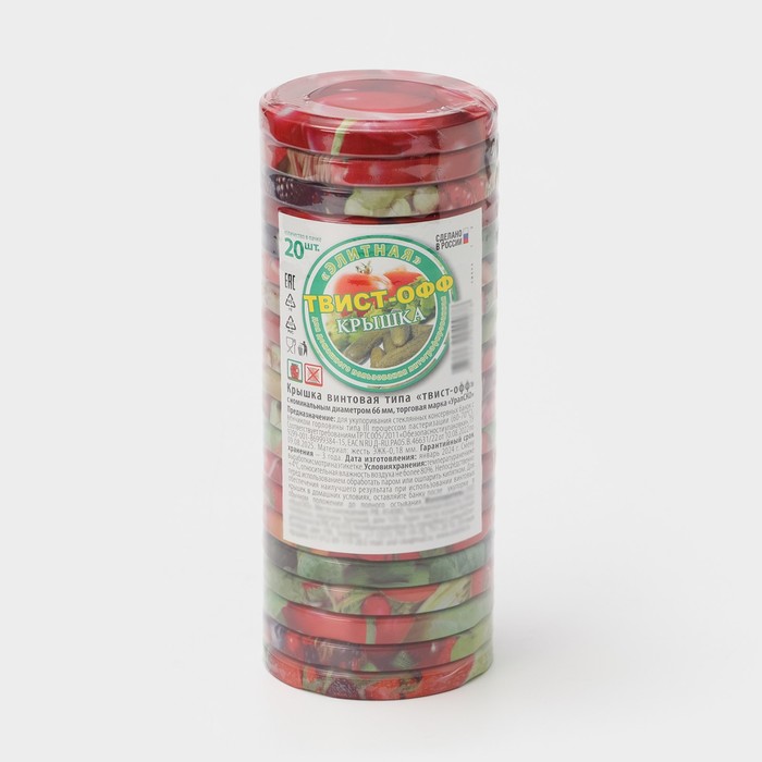Крышка Твист-офф выполнена из высококачественного металла. Кухонный помощник, который сохранит вкус вашего урожая! Упаковка 20 штук.
