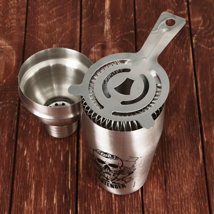 Набор для приготовления коктейлей «Король бара», гейзер, джиггер, шейкер 600 мл, стрейнер, ложка