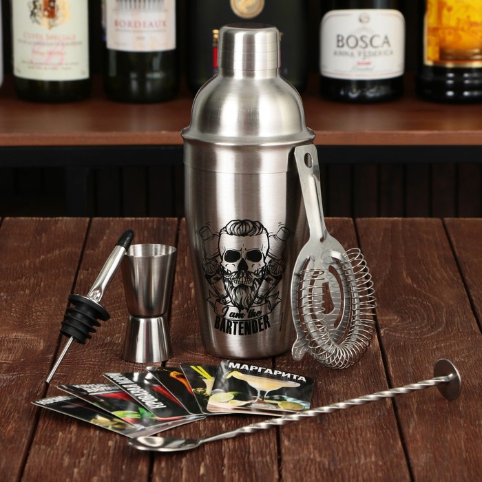 Набор барный «Крутой бармен», 5 предметов, карточки с рецептами
