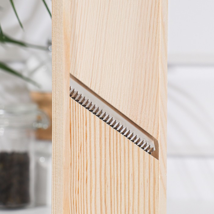 Ручная шинковка позволяет быстро и без особых усилий нарезать овощи. Изделие выполнено из дерева, имеет острое лезвие из высококачественной стали.