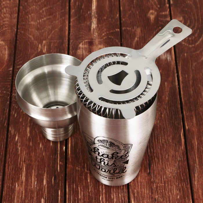 Набор для приготовления коктейлей «Главный по коктейлям», гейзер, джиггер, шейкер 600 мл, ложка
