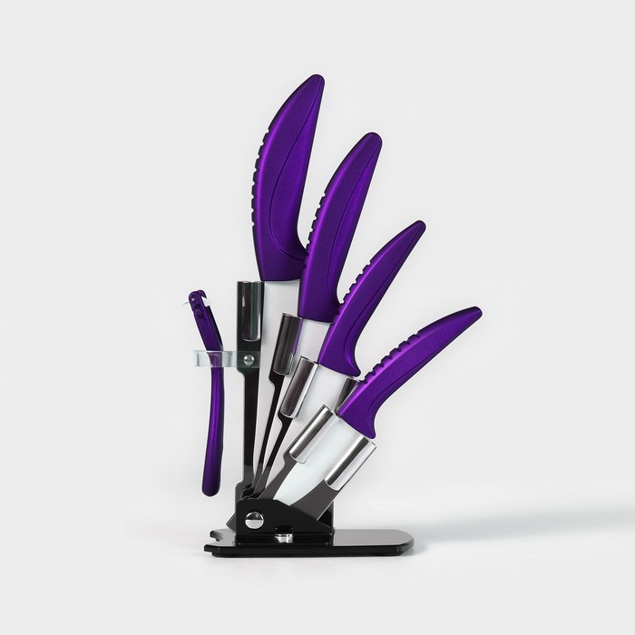 Набор кухонный Доляна «Нарцисс», 3 предмета: 2 ножа с антиналипающим покрытием, лезвие 12 см, овощечистка, 20×4 см, цвет фиолетовый