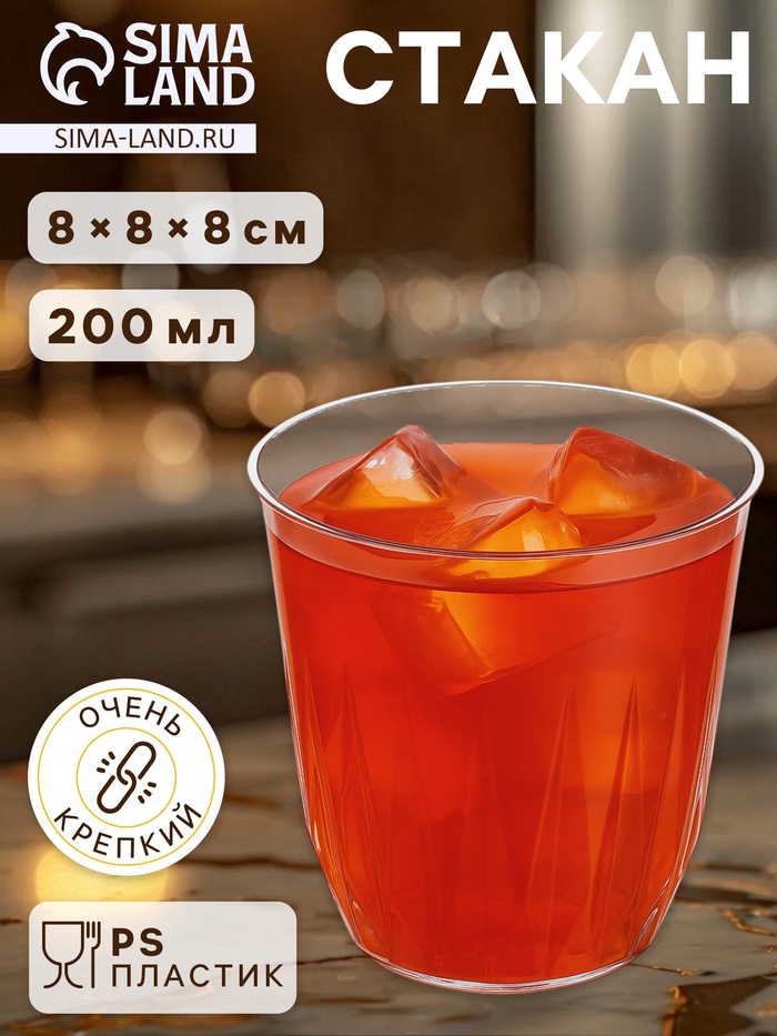 Стакан одноразовый пластиковый Не ЗАБЫЛИ! «Евро», 200 мл, цвет прозрачный