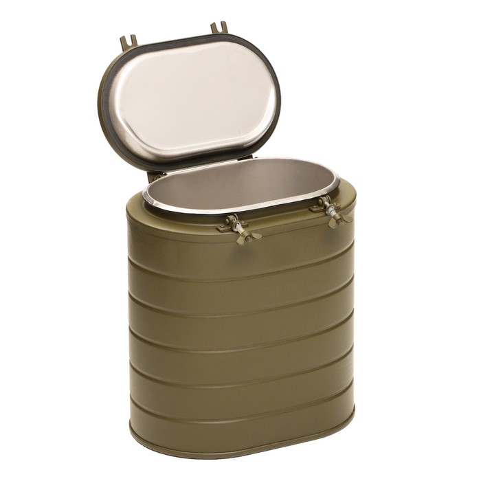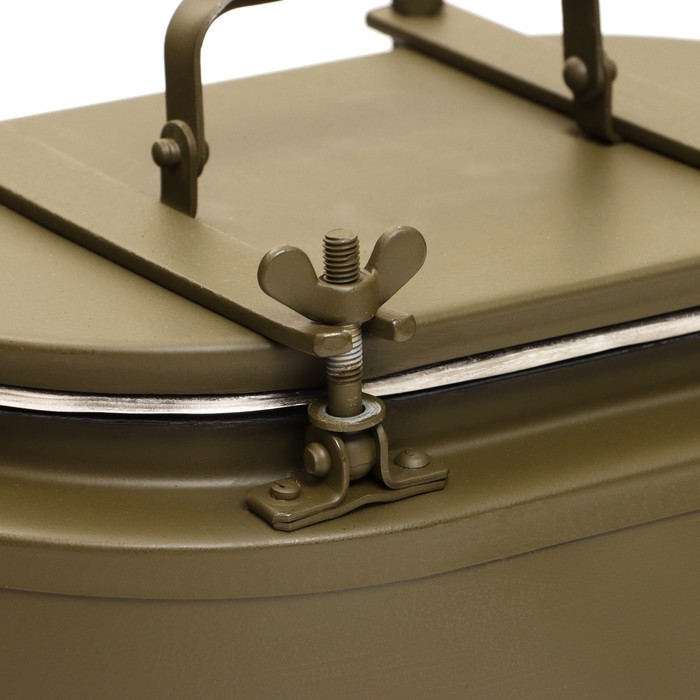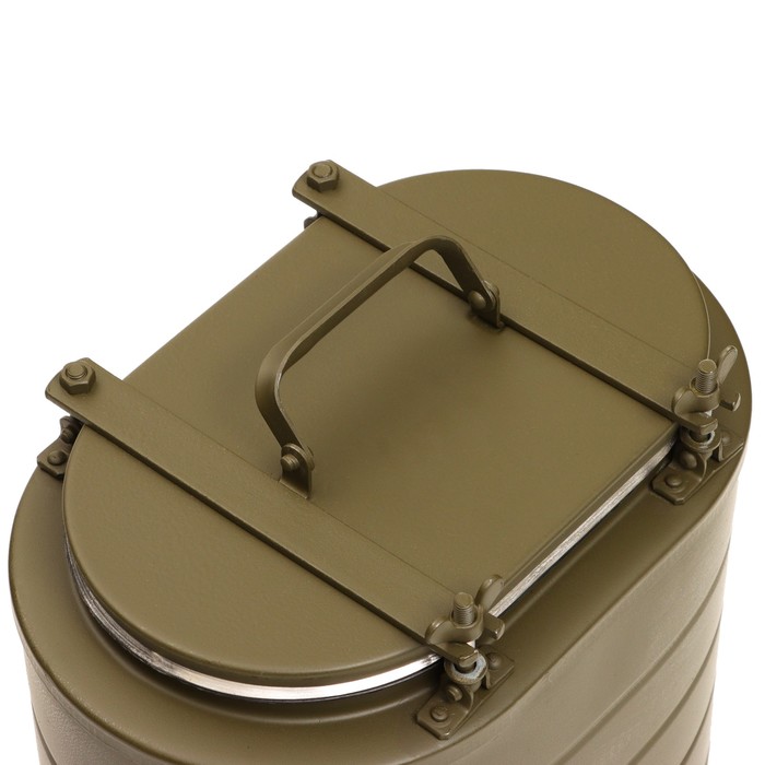 Армейский термос подходит для использования в полевых условиях. Изделие изготовлено из антикоррозийной стали, на поверхность корпуса нанесено атмосферостойкое лакокрасочное покрытие. В конструкции отсутствуют бьющиеся и хрупкие детали.