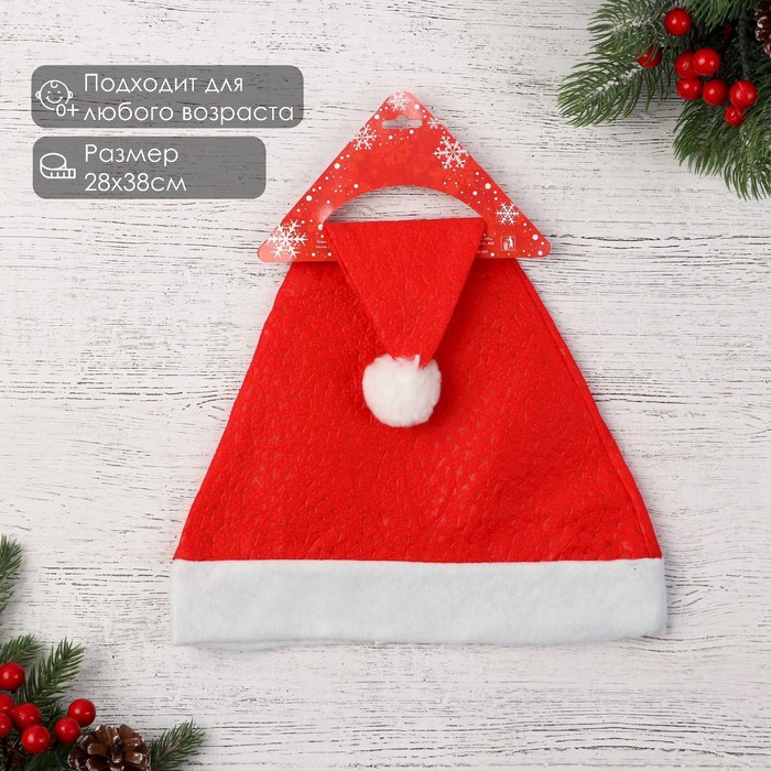 Колпак новогодний "Ворс с серебряными снежинками" 28х40 см, красный