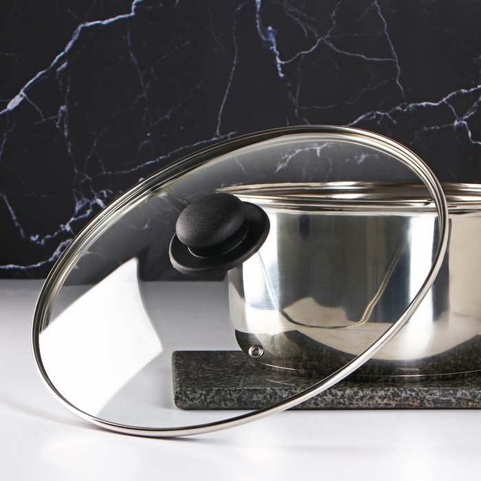 Крышка стеклянная для сковороды и кастрюли «Доляна», d=20 см, нержавеющий обод, пластиковая ручка