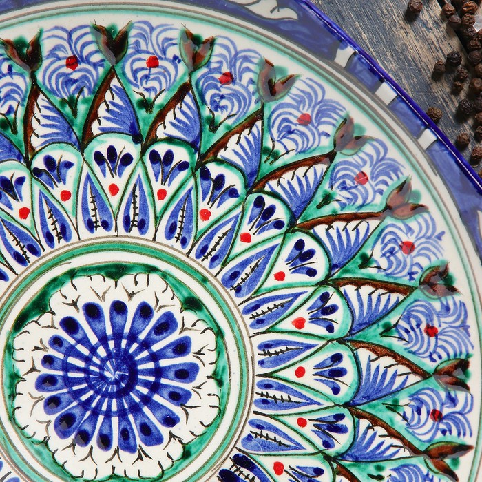 Ляган узбекский Риштанская керамика "Узоры" для плова, 31 см, синий