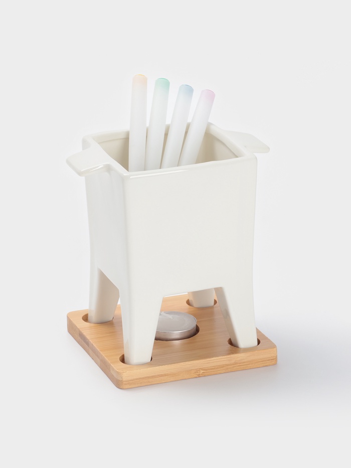 Набор для фондю керамический BellaTenero, 5 предметов: чаша 250 мл, 4 шпажки, цвет белый